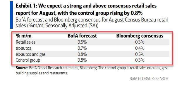 'Brace yourself for a big beat' is the message from BofA's almost omniscient analysts ahead of this morning's retail sales print for August with the GDP-driving Control Group expected to be particularly hot...