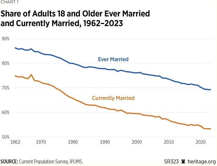 All are impacting family formation and family cohesion. All have their roots in the demoralization of persistent, slow-burning inflation, eating away the value of money. Younger generations hoping to live comfortably can reasonably ask: ‘Who has time for marriage and family?’ The answer: a lot fewer people than in generations past.