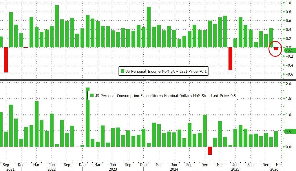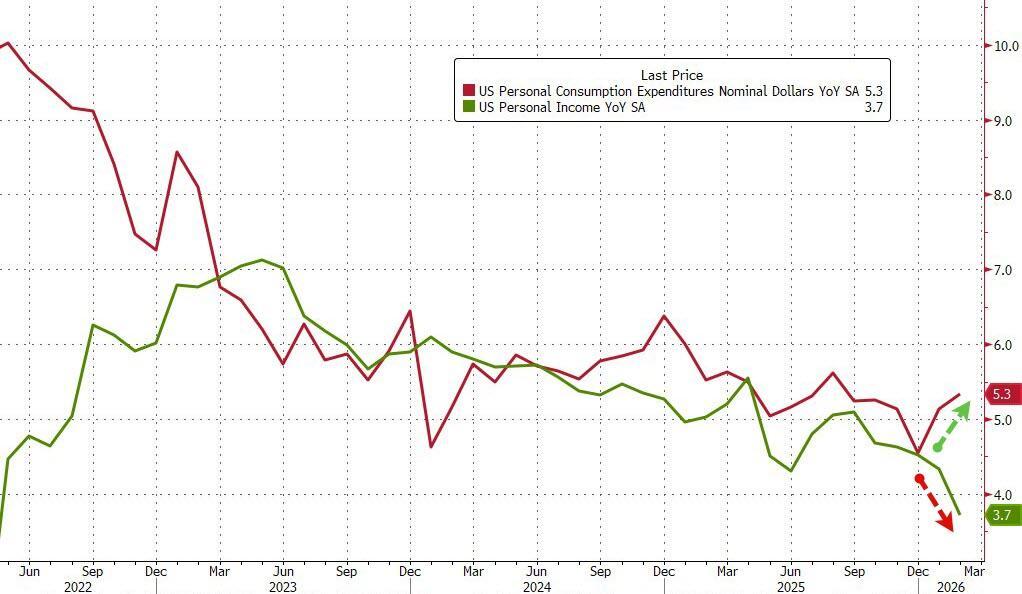 Savings Rate Slides As Fed's Favorite Inflation Gauge Slowed In February (Ahead Of War)