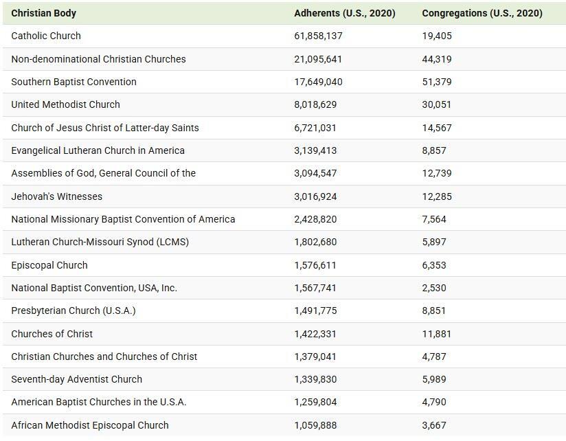 Here’s a closer look at how America’s largest Christian groups stack up: