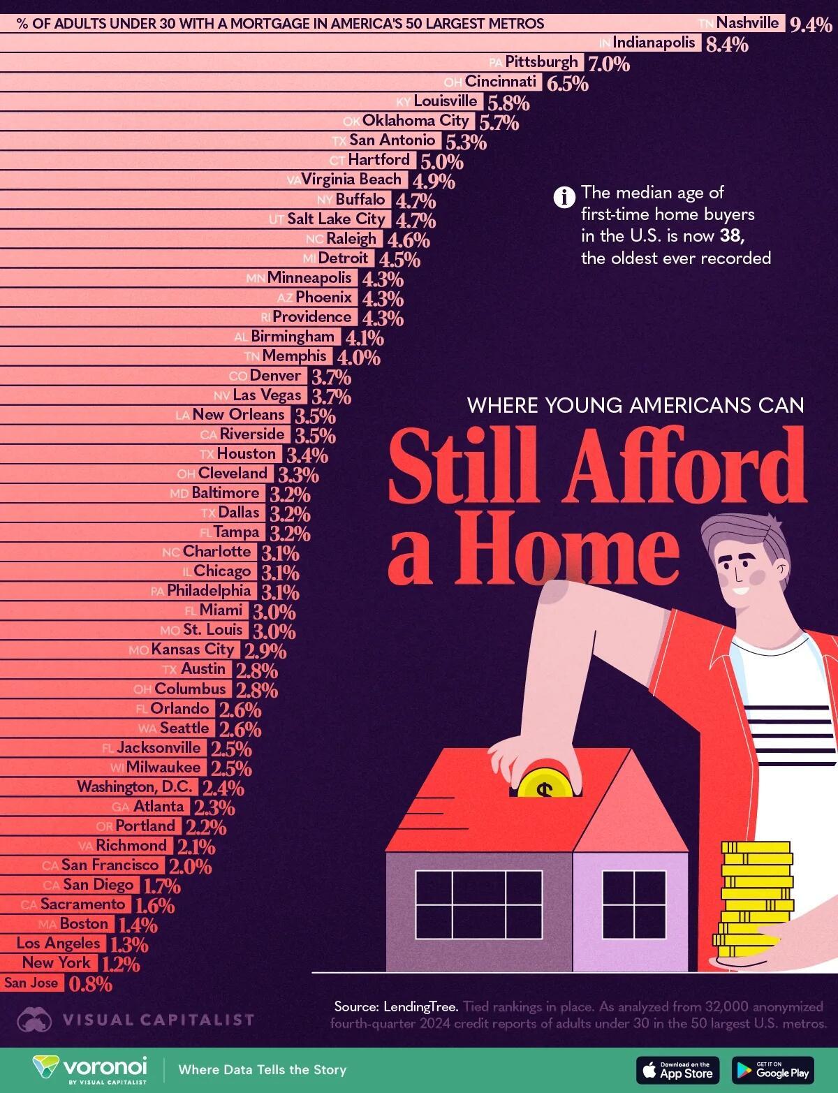 At 9.4%, Nashville claims the highest share of under-30 mortgage holders in the country.