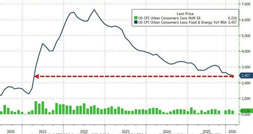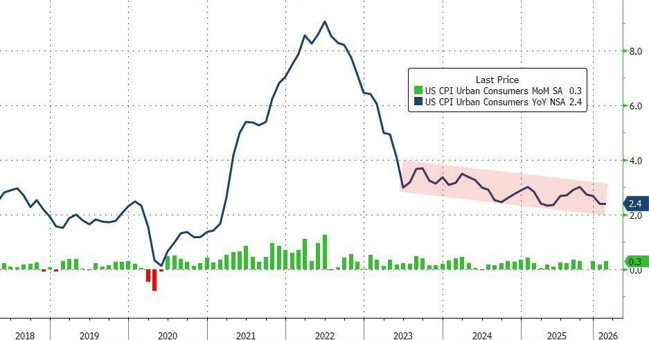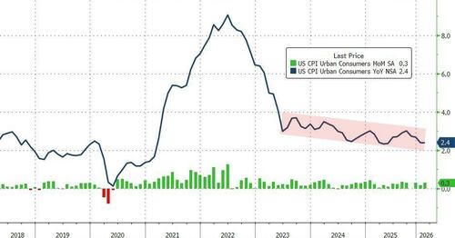 Headline CPI rose 0.3% MoM (as expected), lifting prices by 2.4% YoY (unchanged from the prior month at the lowest since May 2025)...