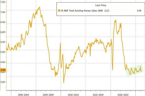 With the beat and upward revision, existing home sales were down just 1.45% YoY but SAAR topped 4mm (4.09mm) once again...