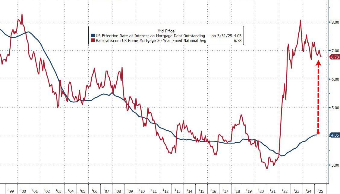 Economists at Goldman Sachs said in a recent note that 87% of mortgage holders have rates below current rates, and two-thirds have borrowing costs 2 percentage points below current rates, “strongly disincentivizing them from moving.”
