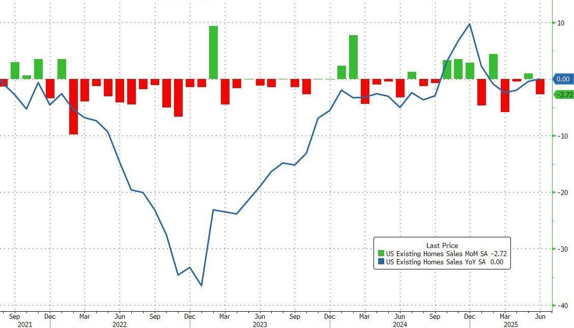 The analysts were right as sales dropped 2.7% MoM (vs -0.7% MoM expected), leaving existing home sales unchanged year-over-year...