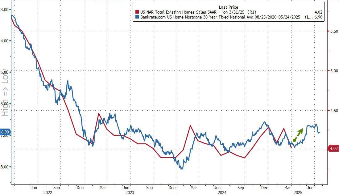 The drop in sales aligns perfectly with the lagged rebound in mortgage rates, which suggests the next two months will see an improvement before weakness resumes...