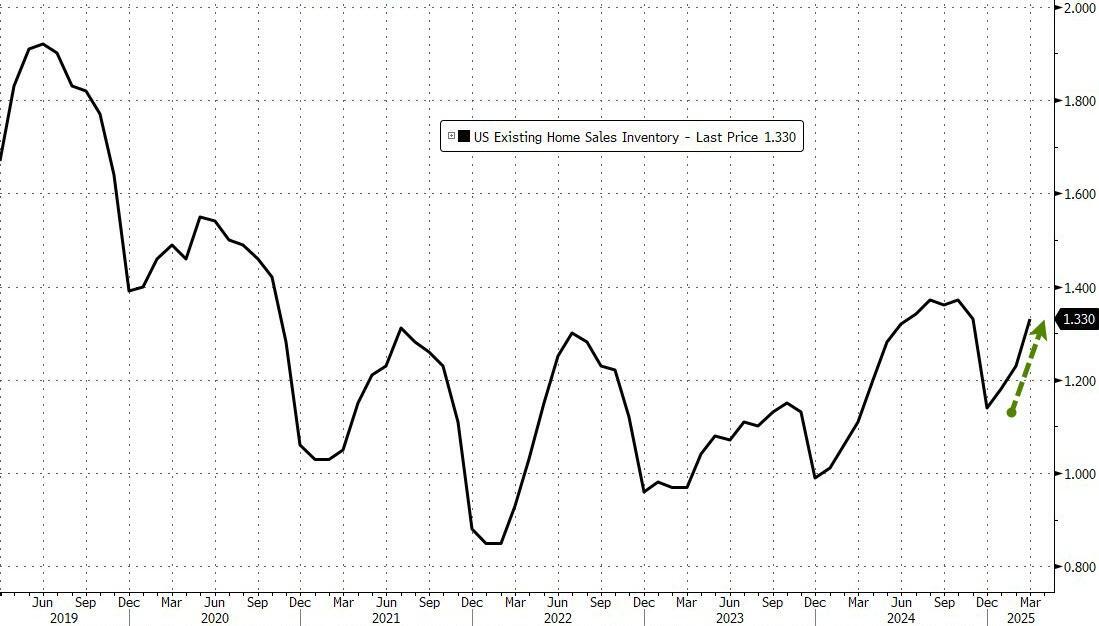 Prices are rising even as more inventory comes onto the market from depressed levels. The supply of previously owned homes jumped 19.8% from a year ago to 1.33 million, the most for any March since 2020.
