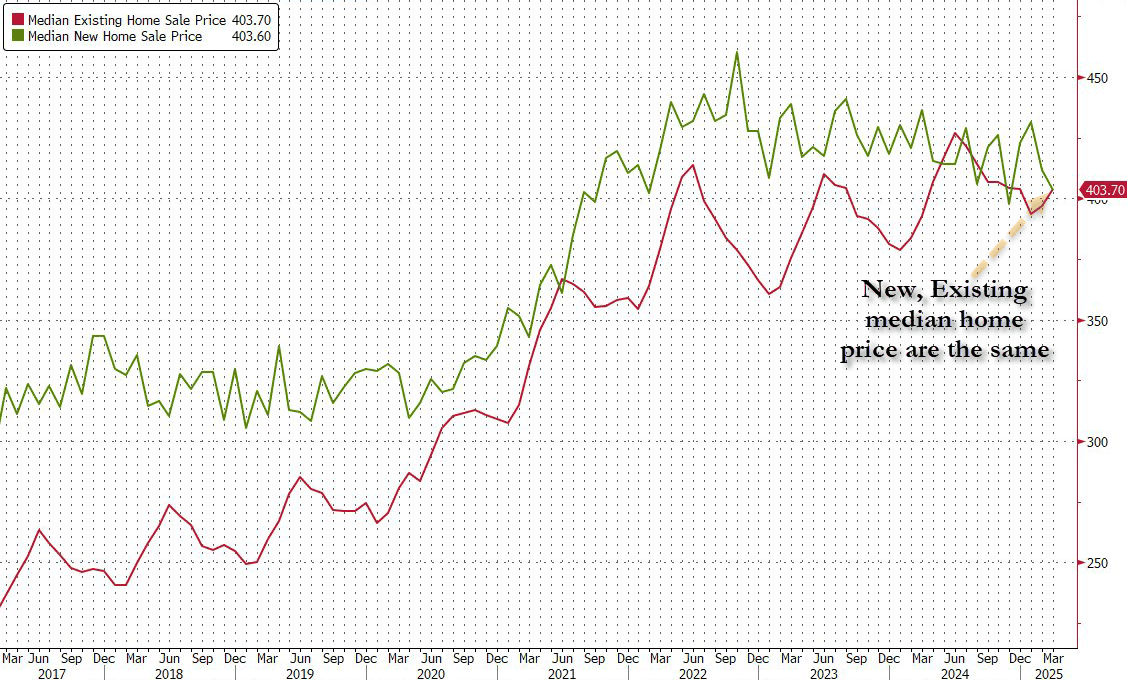 Interestingly, new and existing (median) home prices are once again identical...