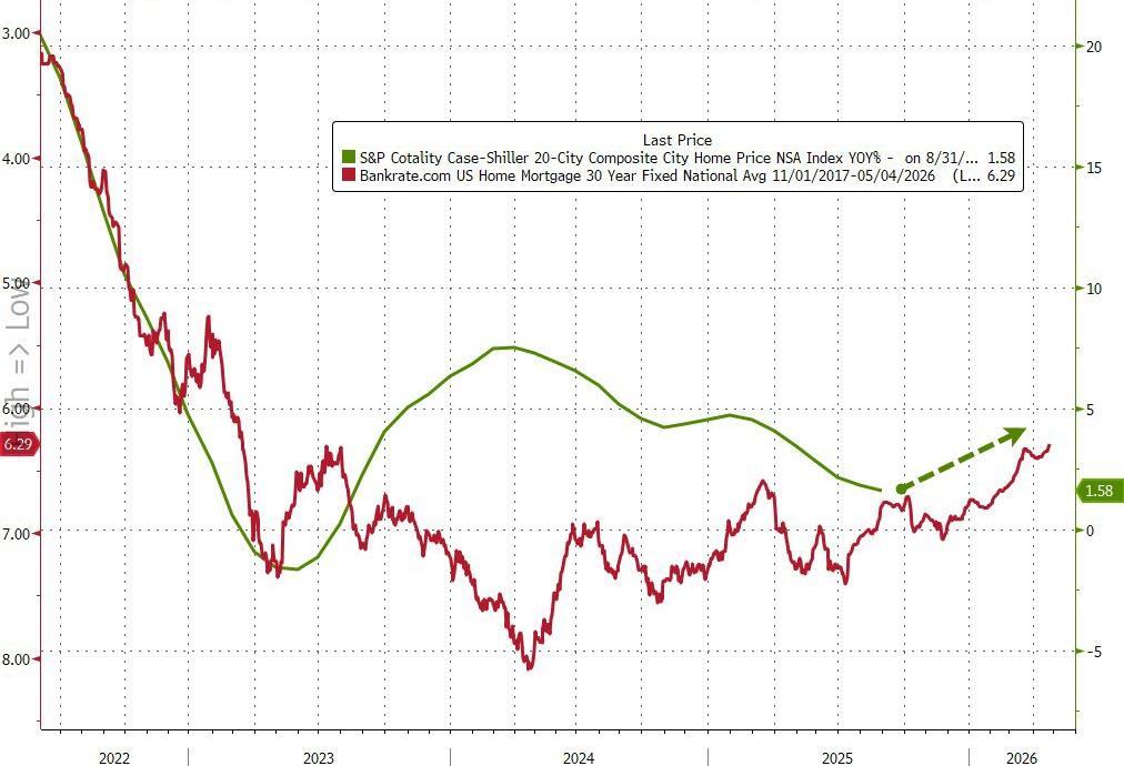 "This marks the weakest annual gain in over two years and falls well below the 3% inflation rate. For the fourth straight month, home values have lost ground to inflation, meaning homeowners are seeing their real wealth decline even as nominal prices inch higher.