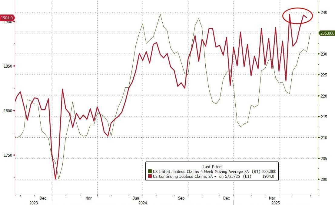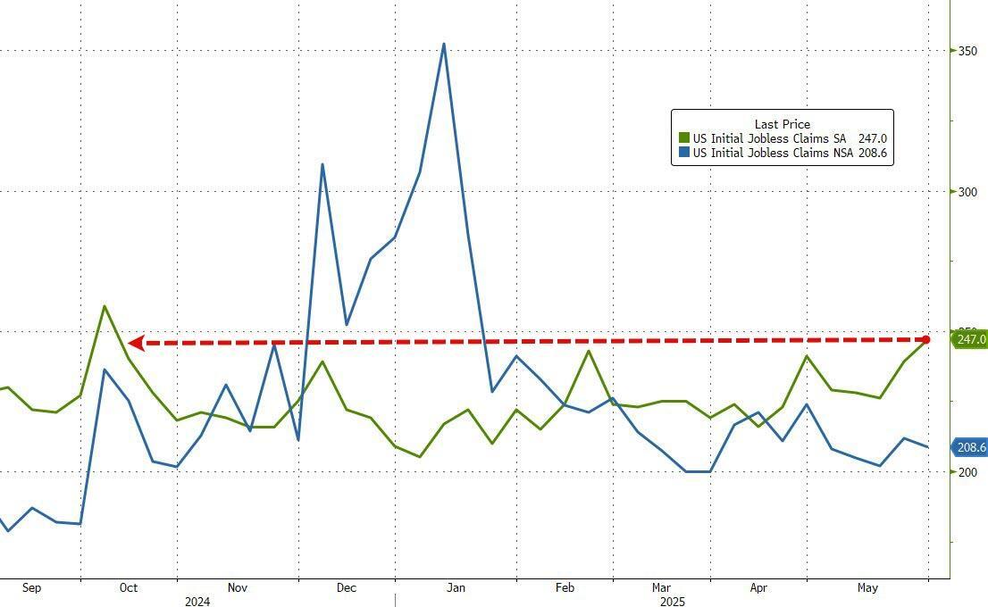 The number of Americans filing for jobless benefits for the first time jumped to 247k last week (above the 239k expected) - the highest since October 2024...