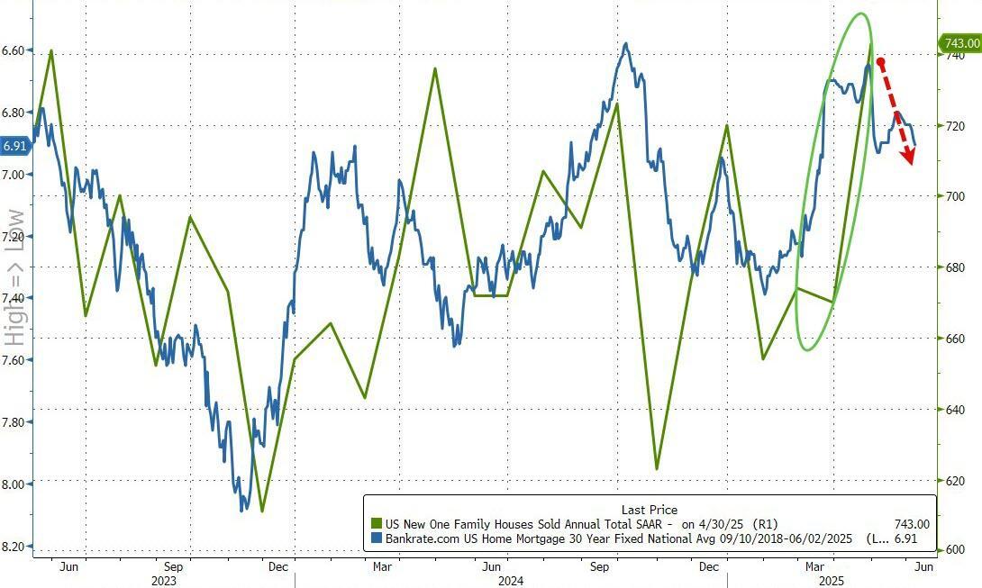 Despite the plunge in homebuilder confidence, US New Home Sales soared in April to 743k SAAR...