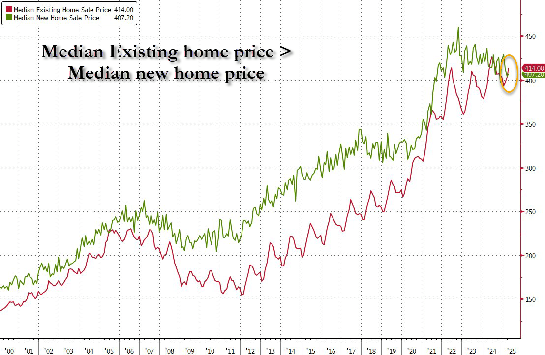 Meanwhile, the median new home sales price decreased 2% from a year ago to $407,200 (on an annual basis, prices have largely been retreating over the past 12 months) and is now back below existing home sale prices...