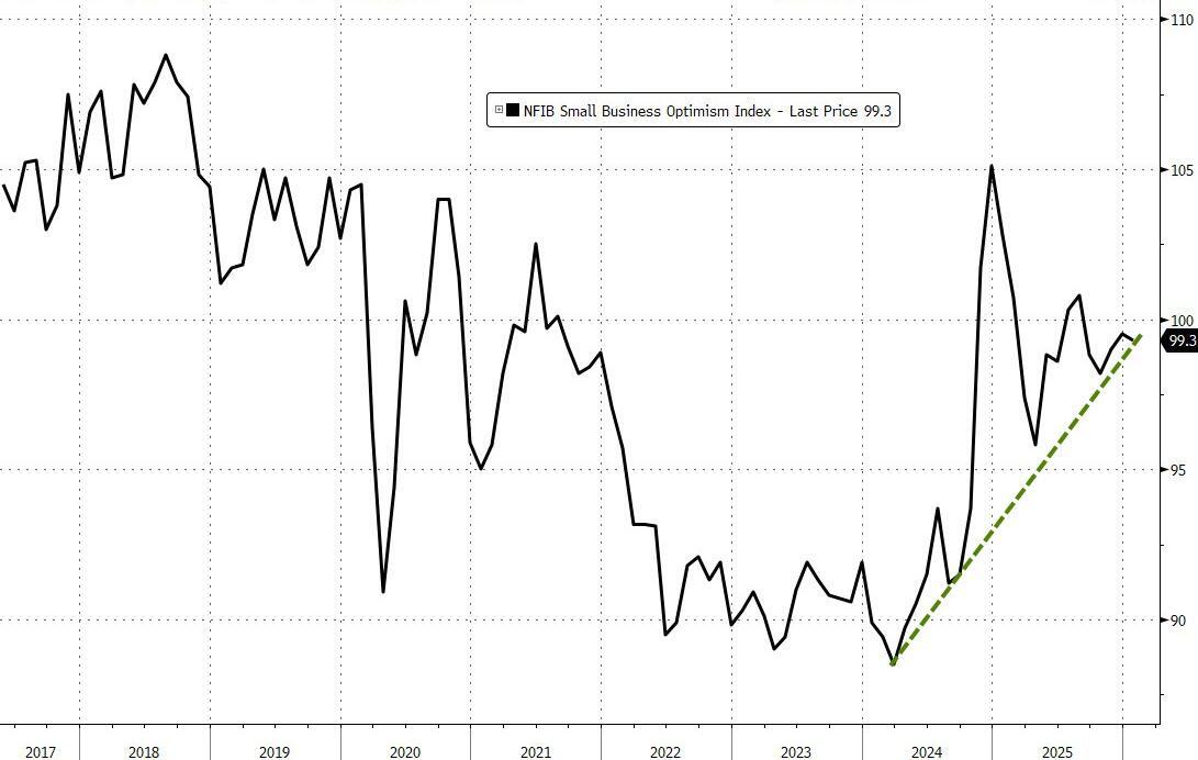 In addition to disappointing retail spending, sentiment among US small-business owners edged down in January for the first time in three months as optimism about the economic outlook eased. The NFIB Optimism index slipped 0.2 point to 99.3, with 7 of the 10 components that make up the gauge decreased, while three increased.