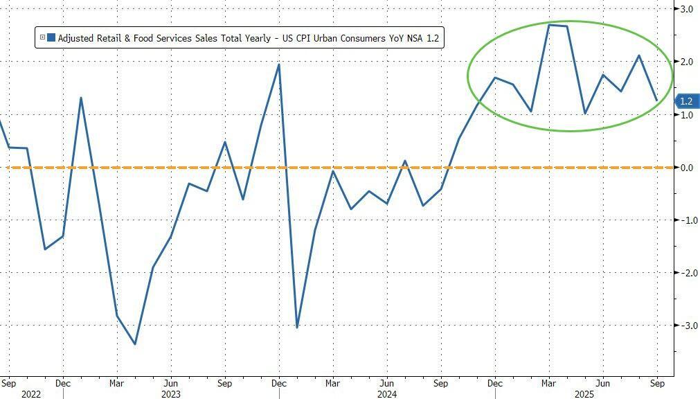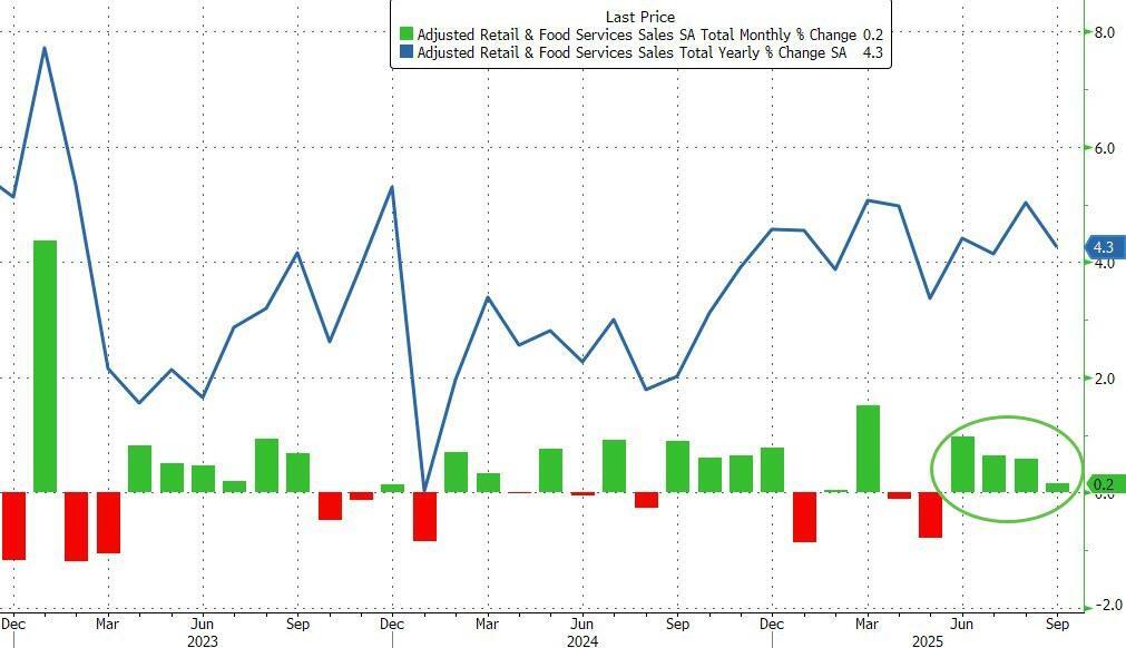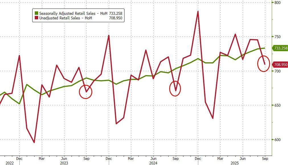 After two months of nothing, the avalanche of actual government-supplied macro data begins in earnest with Retail Sales (for September). BofA's omniscient analysts expected a small beat...