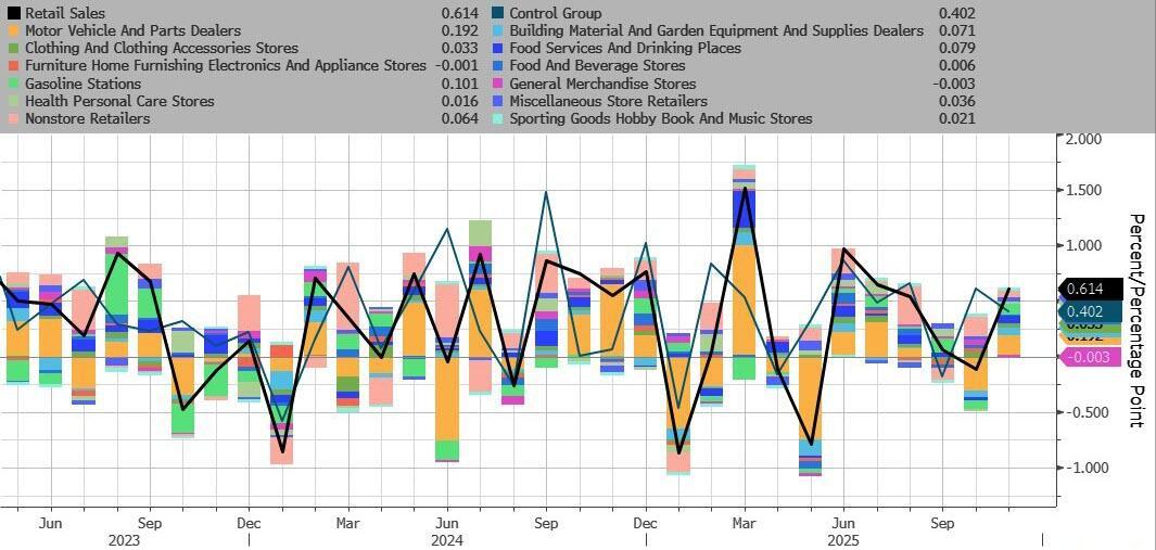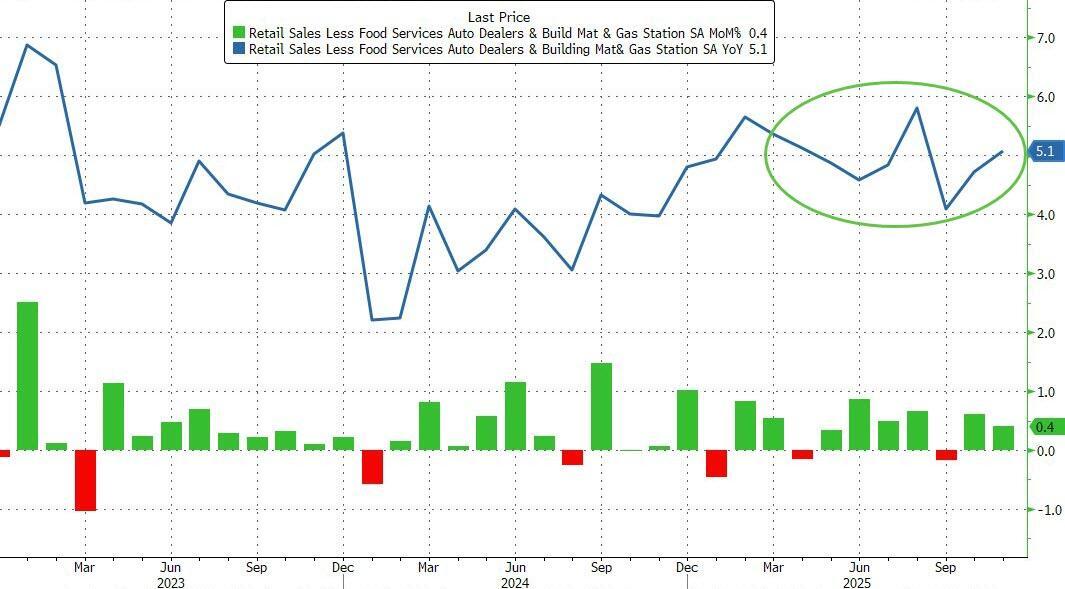 That MoM jump leaves sales up a strong 5.1% YoY and while the 'k-shaped' economy continues to weigh on market sentiment, it is not evident in the aggregate data and supports solid Q4 GDP growth.