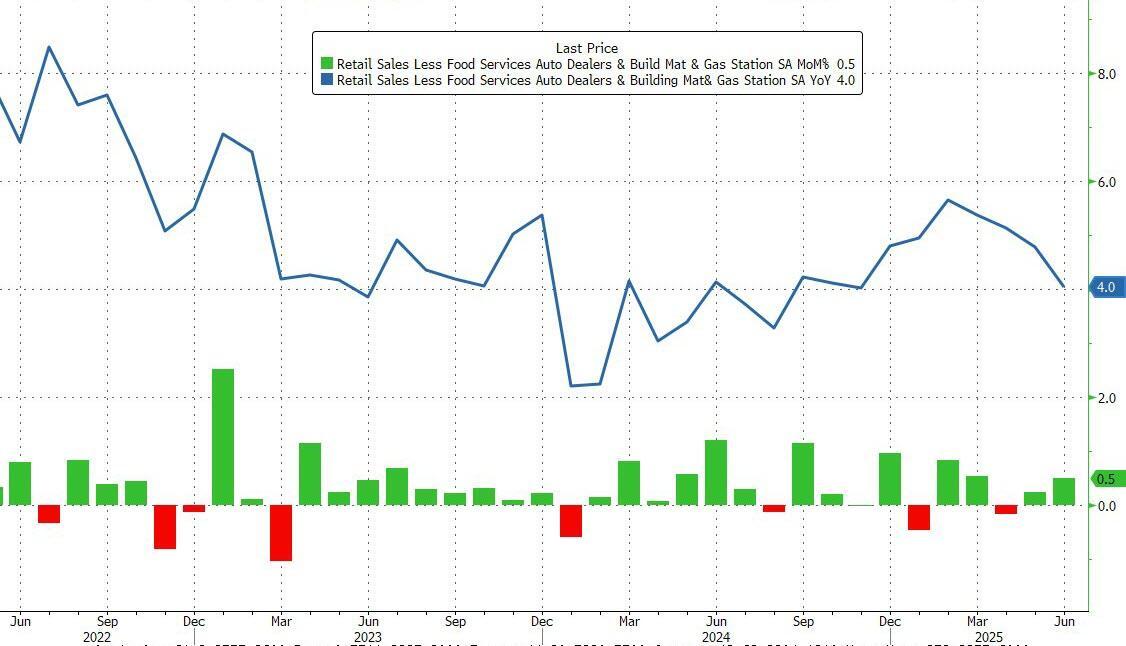 Under the hood, Motor Vehicles and Auto Parts sales surged in June (yes this is AFTER the tariffs went into place and NOT due to any front-running)...