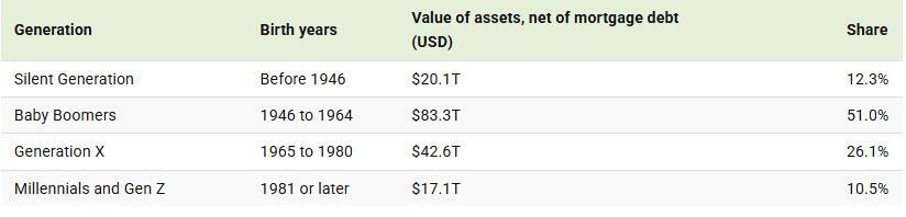 Thanks to decades of strong economic growth and falling interest rates, America’s Boomer generation holds more than half of all of the country’s wealth. Notably, they make up only a fifth of the population.