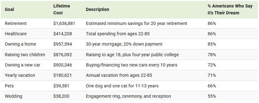 This was calculated by taking $63,609 in average U.S. retirement spending per year, while factoring a 2.5% rate of inflation over 20 years. Today, 86% of Americans say its their dream to retire comfortably.