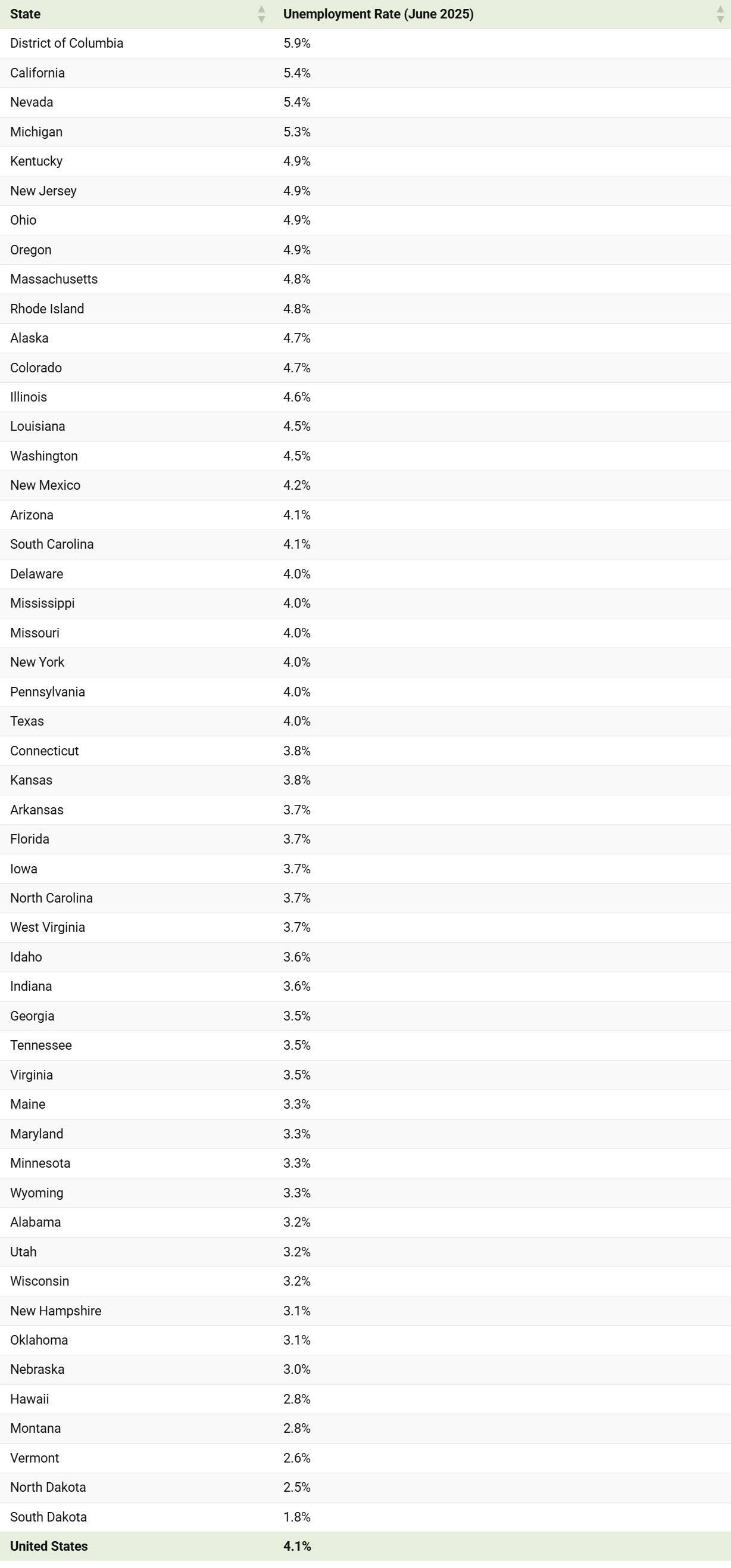 The U.S. labor market remains resilient in 2025, but unemployment figures vary widely by state.