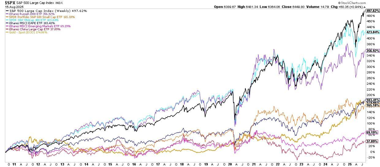 However, over the last 15 years, following the financial crisis, the investing environment has changed. Monetary and fiscal interventions, global central bank interest rate policies, the maturity of algorithmic and computerized trading strategies, and concentration have reduced diversification’s value. As shown, any portfolio “diversified” between large, mid, and small-cap stocks, international and emerging markets, real estate, and gold, has significantly underperformed being invested solely in the S&P 500 index. Furthermore, in times of crisis, like 2020, the diversification failed to protect investors from the downturn as correlations went to “1.”