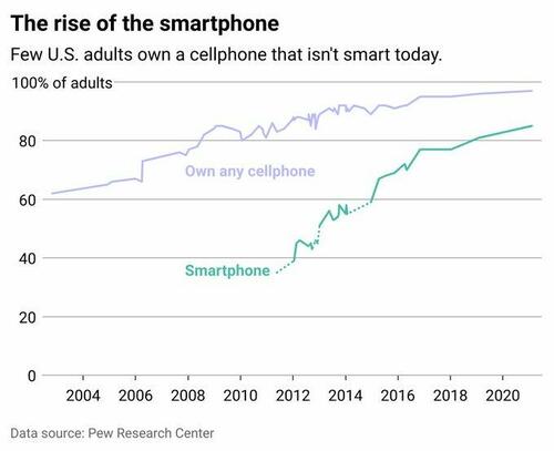The curve steepens through the 2010s as smartphones became universal and platforms became more sophisticated.