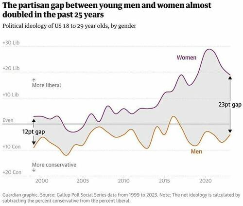 Bill Ackman quote-tweeted a graph showing the partisan gap between young men and women almost doubled in 25 years.