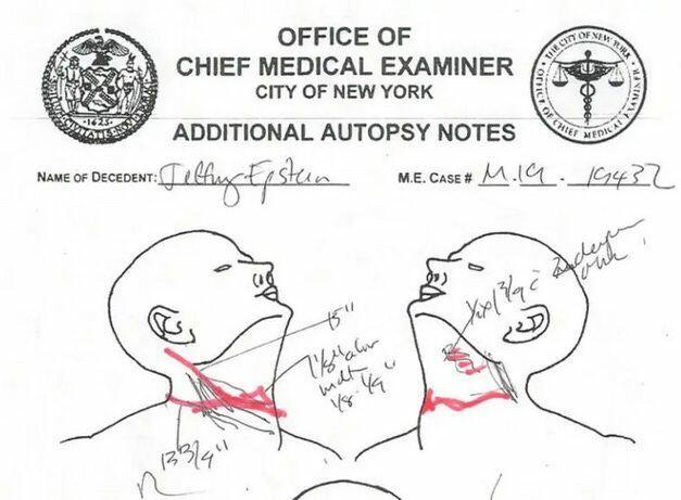 It’s just bad luck a 6 cm tumor documented in Epstein’s neck through 2018 vanished from the 2019 autopsy — with no surgical record explaining its absence.