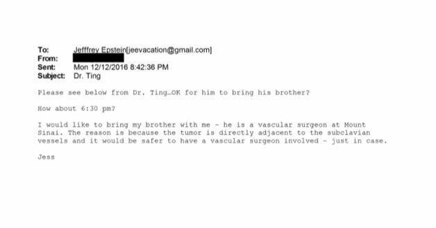 Despite Epstein’s voluminous communications with his doctors in the years and months before his reported death, there is no record anywhere of Epstein having the lipoma removed. As late as September 2018, he was texting his doctor about it. And even if he had somehow undergone an undocumented surgery and recovery in the months before his arrest, that level of operation should have left scarring or other evidence the autopsy would have noted.