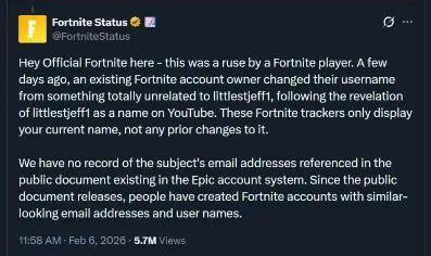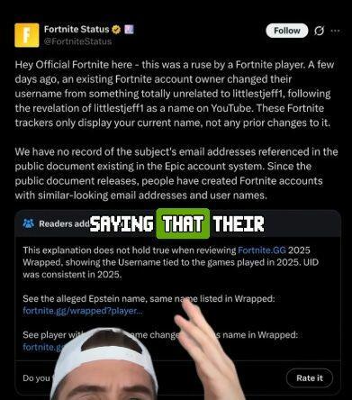 However, Fortnite’s player community noted a problem with this explanation: when people change their username on the platform, you can see the previous usernames. This account showed no prior name. (That community note was later removed from X.)