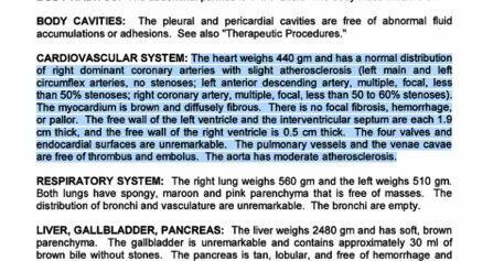 Here is what the official autopsy says of the deceased’s cardiovascular system (a section redacted in some versions of the document):