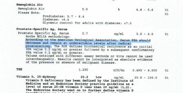 His medical records corroborate this. A LabCorp patient report for Epstein references his “radical prostatectomy” — boilerplate language triggered by a prostatectomy flag in his patient history. This language appears in reports from both 2010 and 2018.