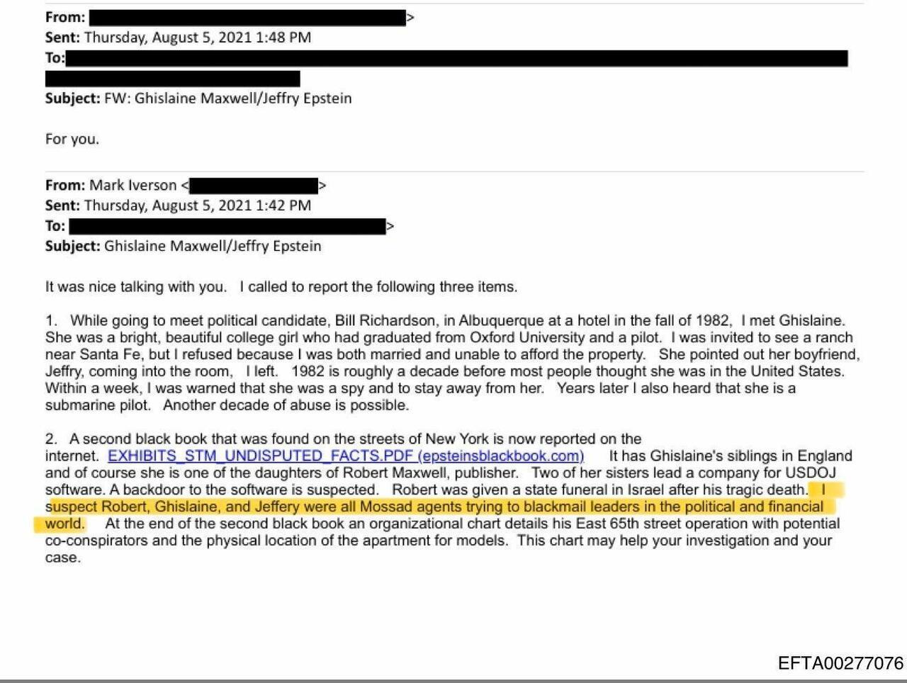 Should we wonder if the FBI has a conflict of interest considering its post-9/11 data-mining was in large part assisted by Chiliad, a Big Data company run by Ghislaine Maxwell’s sister, Christine? One whistleblower told the FBI “a backdoor to the software is suspected … I suspect Robert, Ghislaine, and Jeffrey were all Mossad agents trying to blackmail leaders in the political and financial world.”