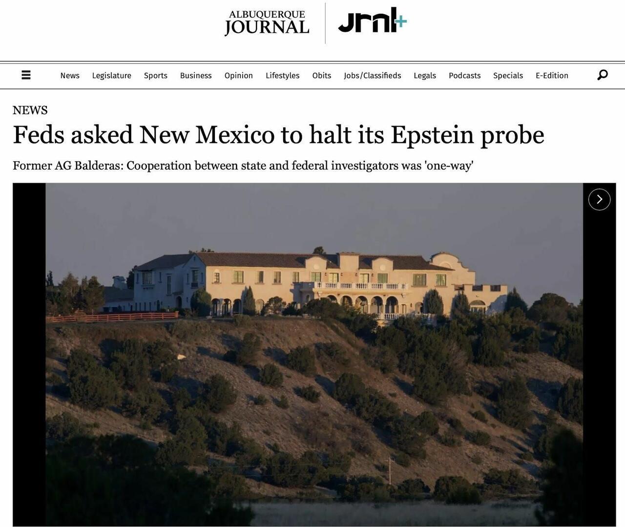 Case in point: Zorro Ranch. Many Americans have wondered why the feds never raided Epstein’s 7,500-acre New Mexico compound despite multiple victims testifying of abuse there. But it’s worse than neglect — the feds actively prevented others from investigating, reports the Albuquerque Journal.