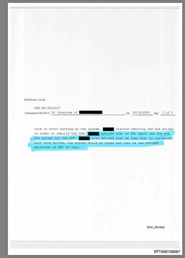 Then there are the jail’s surveillance hard drives. The Epstein Files contain an FBI memorandum admitting that an FBI agent removed the hard drive from the jail’s camera system, wiping all of the data from the night Epstein died. The agent did this, they acknowledge, even as he knew doing so would result in the content’s corruption. This comes on top of two other surveillance systems that independently failed that night.