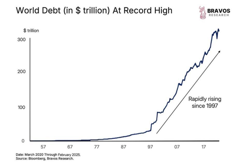 Global debt in 1997 was $30T. Today, that figure has skyrocketed well past $300T.