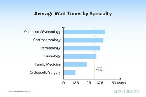 Across all six specialties, average wait times range widely, from weeks in some cities to just days in others. The Epoch Times