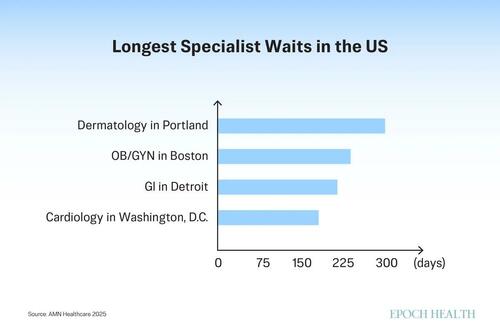 Across six specialties, appointment wait times continue to climb. The Epoch Times