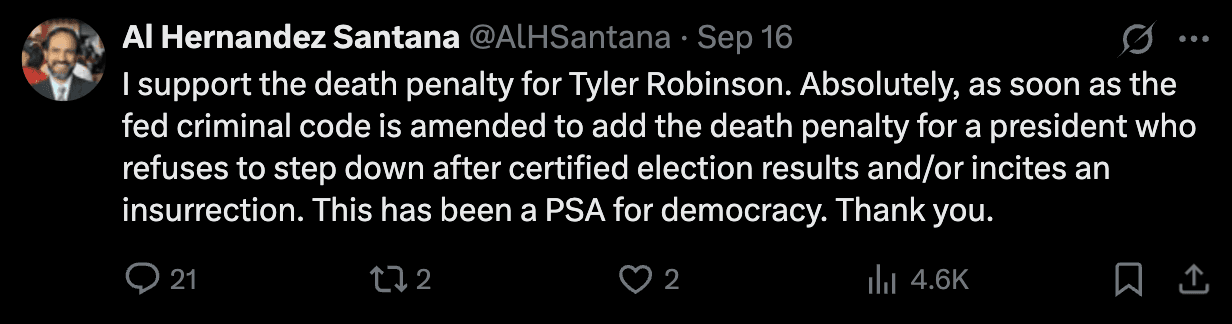 An X account matching the Hernandez-Santana profile contains a series of anti-Trump posts.
