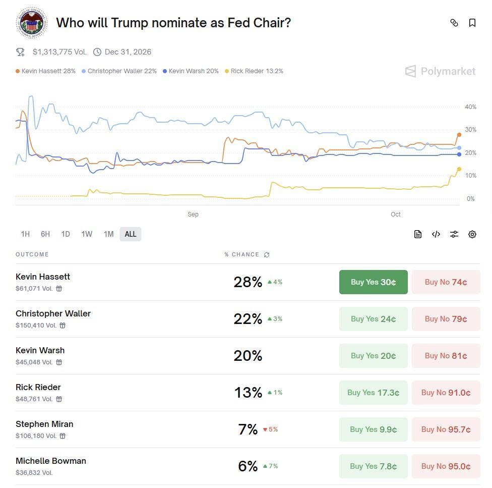 According to Polymarket, Hassett is the current favorite to be Powell's replacement...