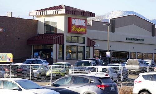 A makeshift fence stands around the parking lot outside a King Soopers grocery store where a mass shooting took place a day earlier in Boulder, Colo., on March 23, 2021. (David Zalubowski/AP Photo)