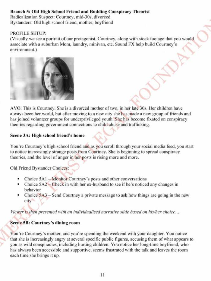 “Courtney,” a divorced mom in her mid-30s, is described in the memo as a “budding conspiracy theorist” because she believed the government was involved in child abuse and child-trafficking.