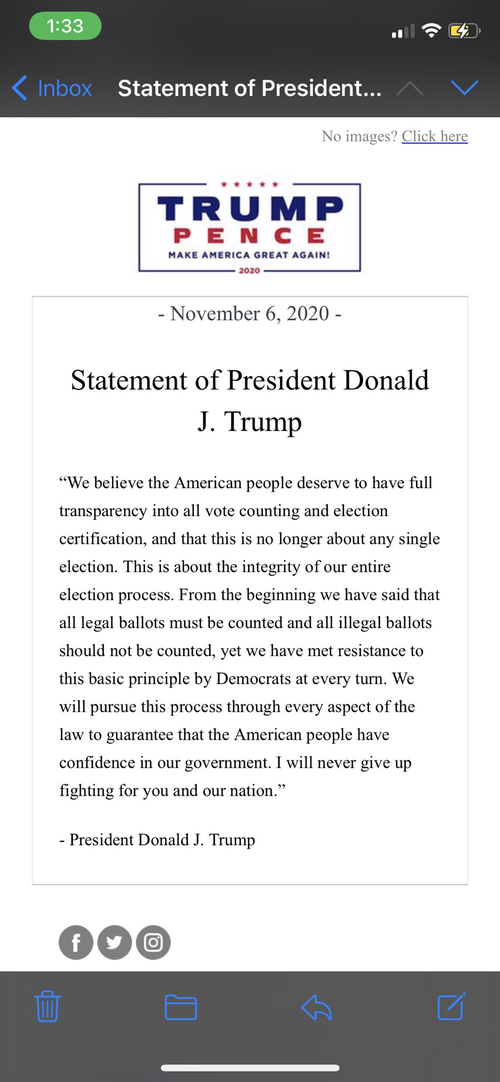 — Trump War Room - Text TRUMP to 88022 (@TrumpWarRoom) November 6, 2020