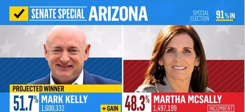 Meanwhile, Democrats seemingly can't help touting the victory of Mark Kelly, a former astronaut and husband to former Congresswoman Gabby Giffords, who was shot by a psychotic lunatic with a gun.