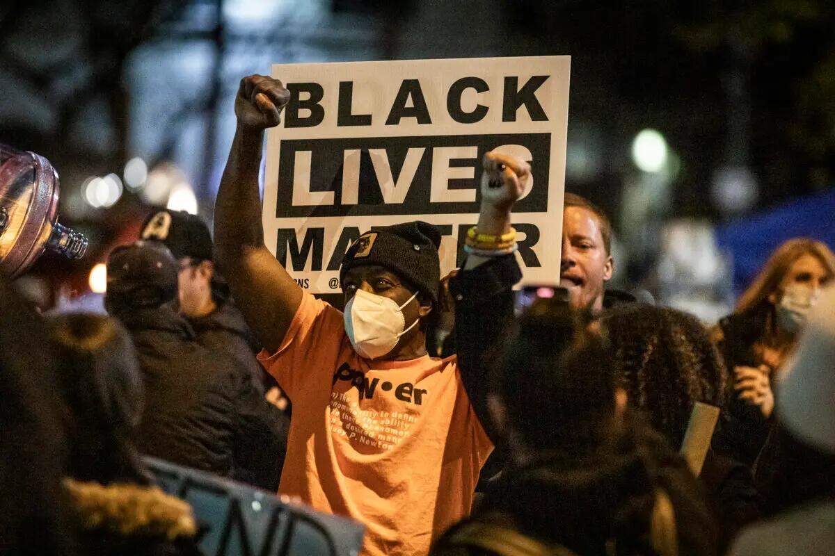 Black Lives Matter activists in Los Angeles on Dec. 30, 2020. John Fredricks/The Epoch Times
