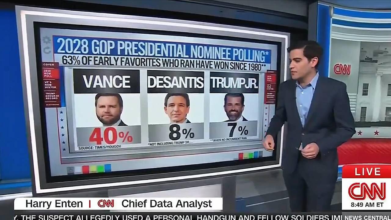 “If Donald Trump decides to get behind his vice president, this GOP nomination fight in 2028 is likely adios amigos. Over,” Enten urged, adding “JD Vance is very much likely going to be the GOP nominee, which is what the polling says and what history says as well. At this point, things all seem to be coming up for JD.”