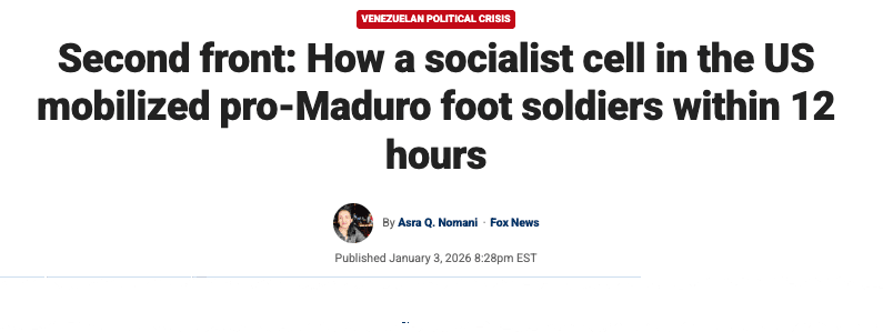 The Democratic Socialists of America (DSA) issued a statement condemning the action and demanding Maduro's release. New York City Mayor Zohran Mamdani—a DSA member—reportedly consulted with Ramzi Kassem, a lawyer infamous for representing al-Qaeda figures, and allegedly called President Trump to "register his opposition." At the same time, Neville Roy Singham's network hosted a pro-Maduro protest in Times Square, even as Venezuelan exiles celebrated freedom from the man who ruined their country.