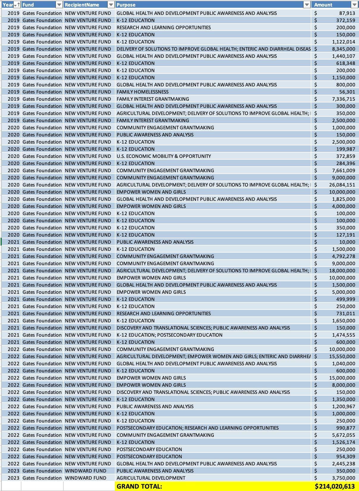 Summary of the Gates Foundation's distribution to the Arabella empire.