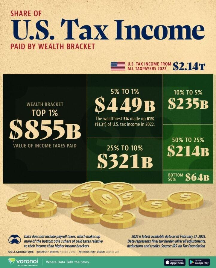That’s right. The bottom 145 million US income tax filers (out of 161 million total filers) currently pay just $500 billion in Federal income taxes. That’s barely $3,500 per return and even then approximately 50 million of these returns owe zero taxes or actually get tax credit refunds for taxes they haven’t paid!