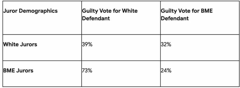 The United Kingdom is not immune to these exact same forces. Research by Cheryl Thomas at UCL provides what can only be described as the smoking gun of ethnic jury nullification.