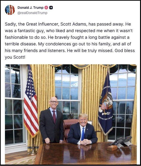 — Scott Adams (@ScottAdamsSays) January 13, 2026